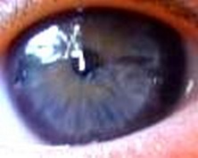 se esparrama por toda íris, sugerindo alergias/autoimunidade.